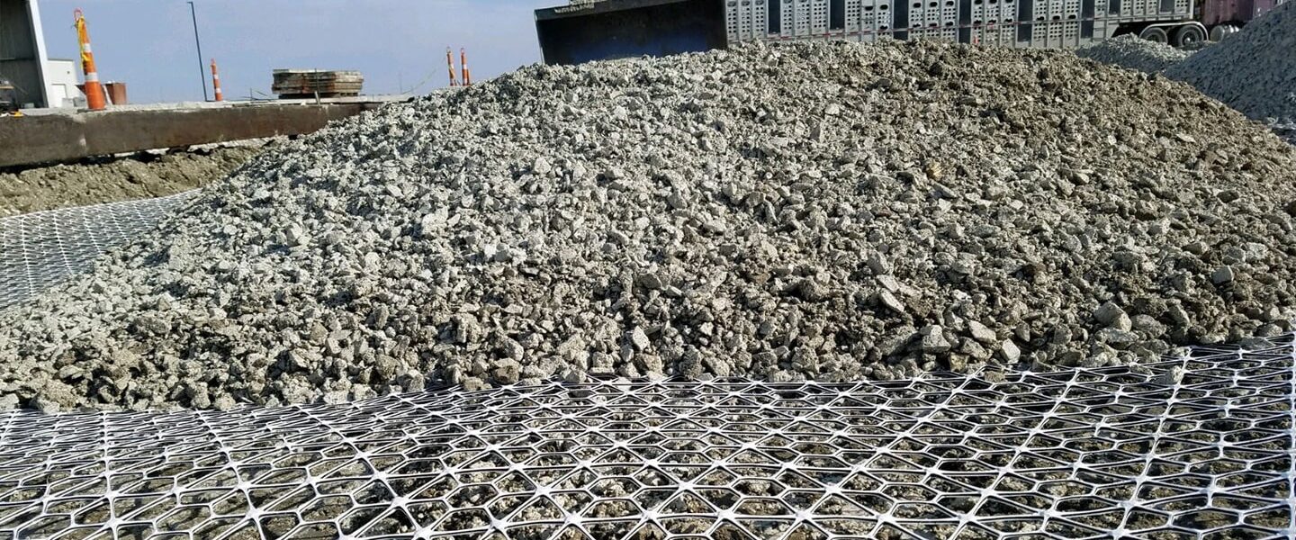 Les géogrilles sont des structures rigides présentant des ouvertures de formes et dimensions variables, utilisées pour renforcer les couches de fondation ou de pavage. Elles augmentent la capacité portante des sols, limitent les déformations et prolongent la durée de vie des ouvrages.